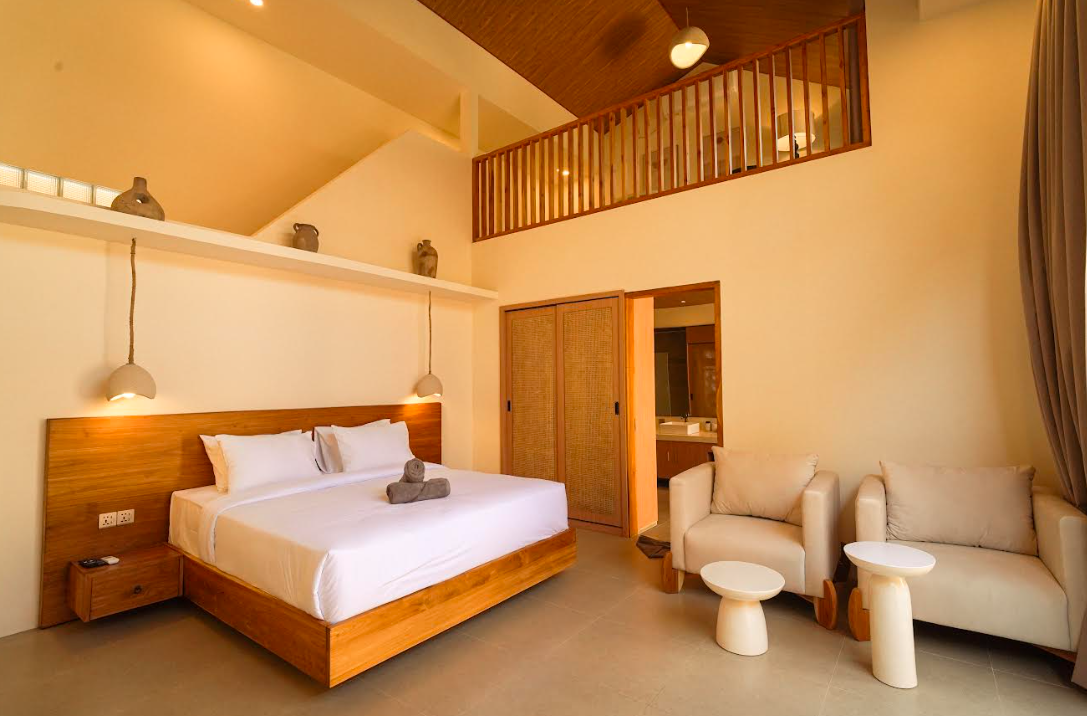 One Bedroom 25 m2 (Queen Bed), Bathroom 18 m2, Kitchen 12,5 m2, Private pool, Seating area in 2nd floor